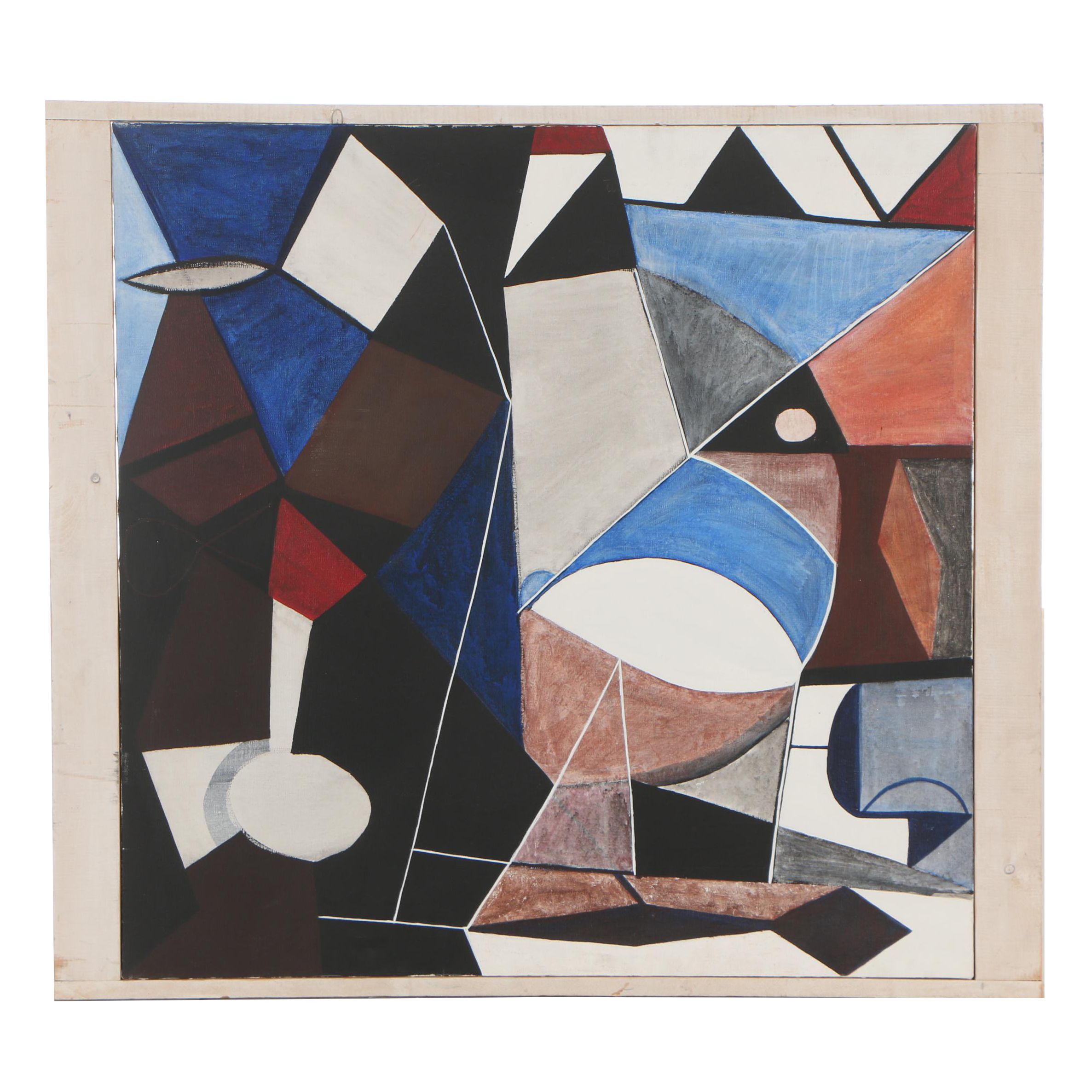 Amazing Mid 20th Century Cubist Abstract Geometric Oil Painting Listed Artist