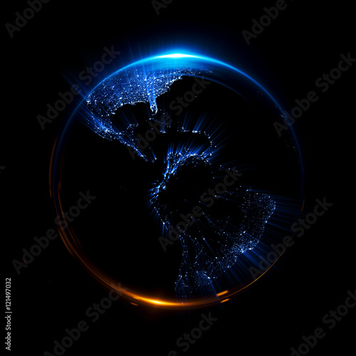 A Stylized Image Of A Planet Earth 3d Rendering City Light