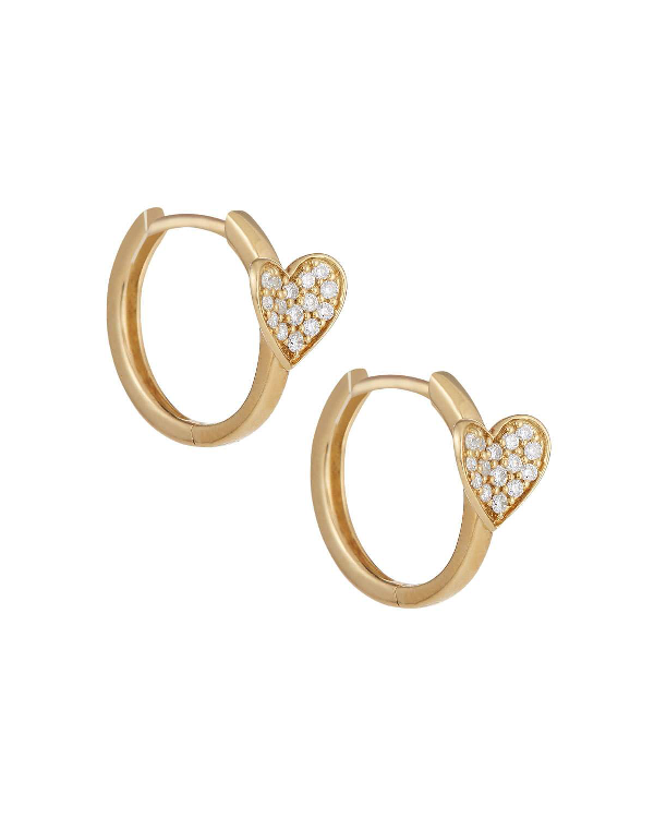 18k Yellow Gold 3d Diamond Heart Hoop Earrings