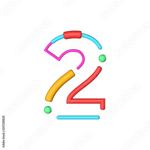 Number 2 Abstract Modern Color Line Font Alphabet 3d