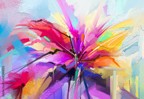 Abstract Colorful Oil Acrylic Painting Of Spring Flower