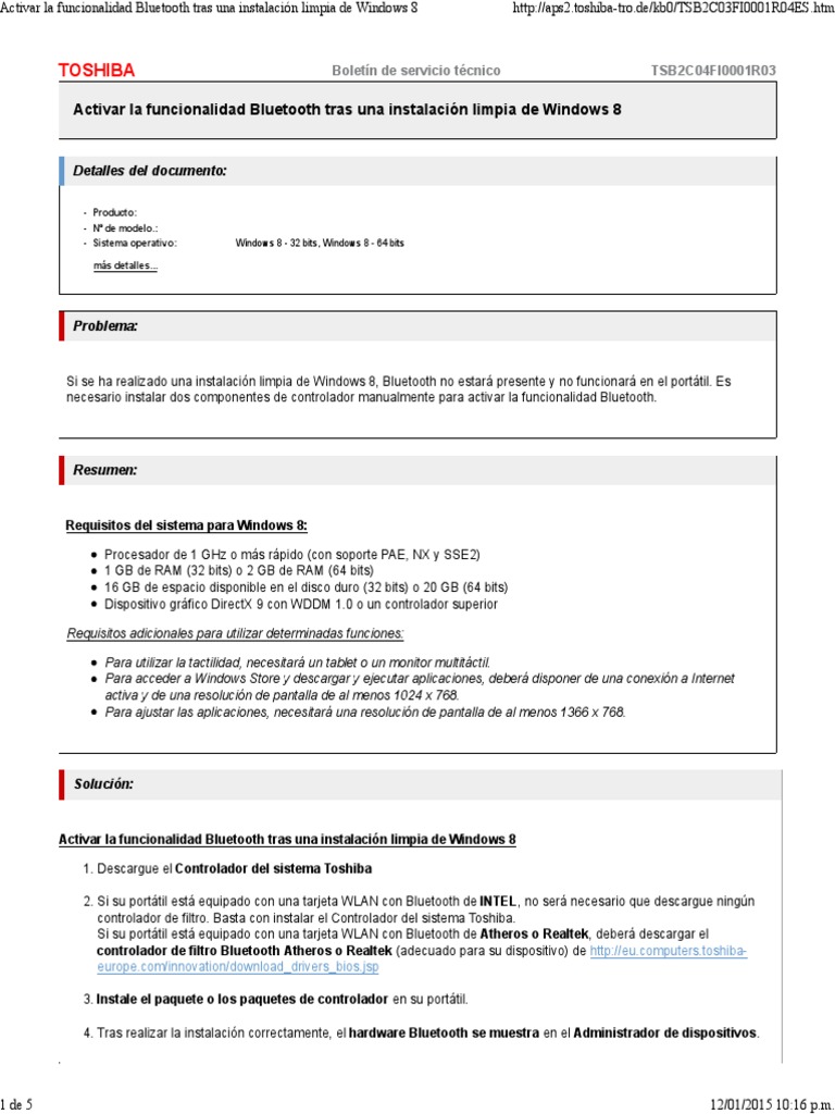 Activar La Funcionalidad Bluetooth Tras Una Instalacion