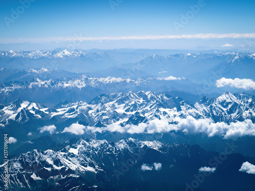 Aerial Views Of Snow Capped Mountains Stock Photo