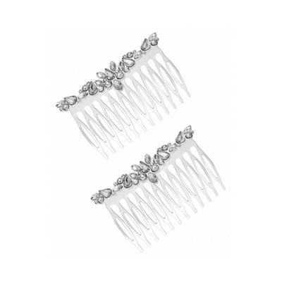 Silver Plated Clear Navette Hair Comb