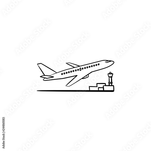 Airplane Taking Off Hand Drawn Outline Doodle Icon Airport