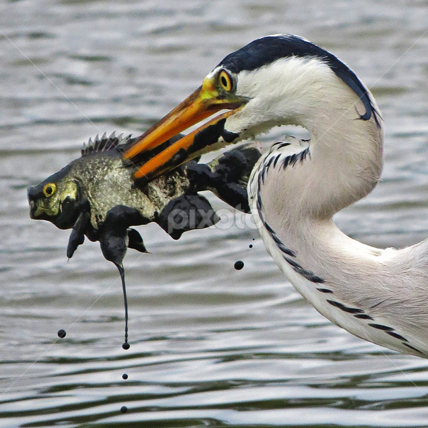 Merciless Lunch Grey Heron Ardea Cinerea At Japanese