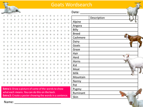 Goats Wordsearch Animals Nature Farm Literacy Starter Activity Homework Cover Lesson