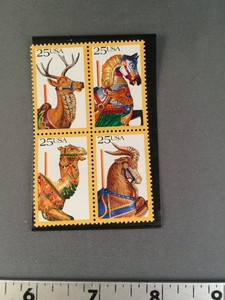 Details About 4 Block Us Stamps 25 Cent 1988 Carousel Animals Horse Deer Camel Ram Christmas