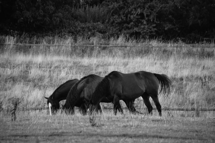 Animals Horses Black White Landscapes Pasture Fields Farm