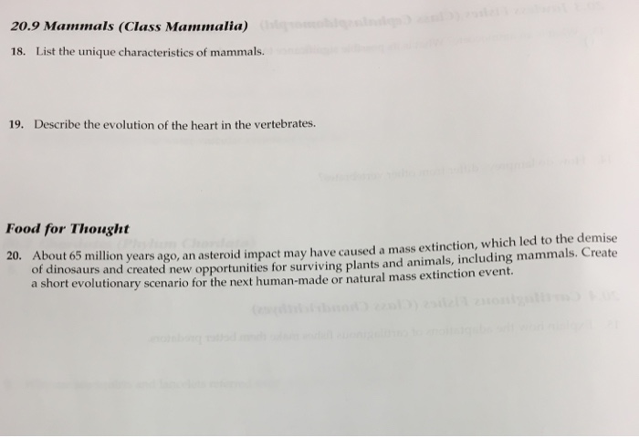 Solved 20 9 Mammals Class Mammalia 18 List The Unique