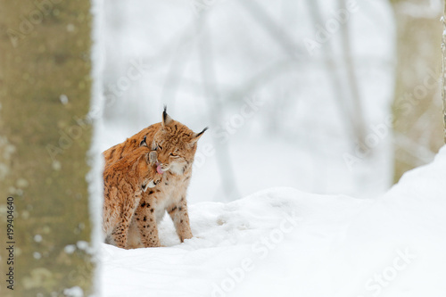 Animals mammals snow trees bobcat. It has shorter ear tufts smaller less furry feet and the tip of its tail is black only on the top. The bobcat hunts animals of different sizes and adjusts its hunting techniques accordingly. Bobcats are solitary animals. The bobcat appears smaller and more slender than the lynx.