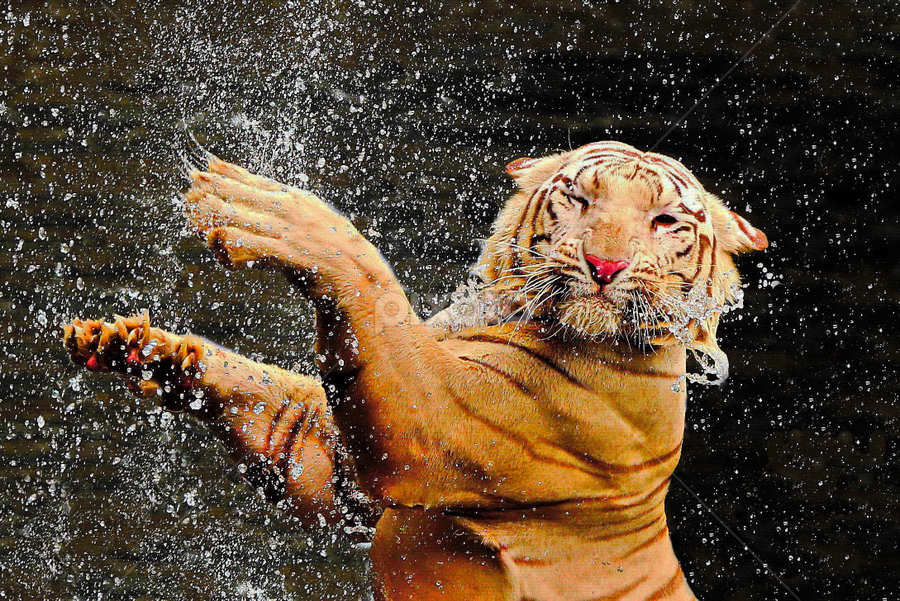 Animals Fighting Selective Coloring Tiger Wallpapers Hd