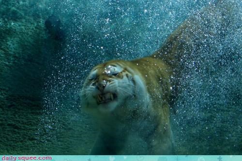 Rarwr Tiger Swimming Underwater Shot Animals People
