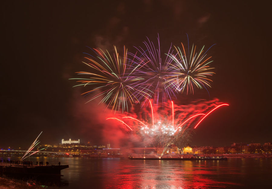 Architecture Castle Clouds Water Lights Tower Night