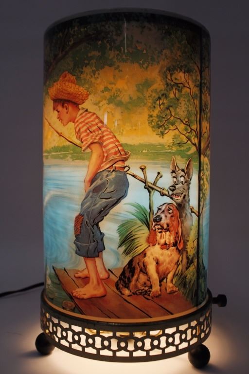 Lacolite Fishing Boy Dogs Motion Lamp Circa 1971