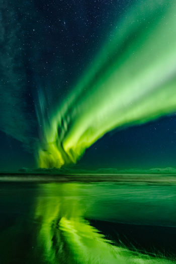 Green Northern Lights In Lofoten Islands Norway Aurora