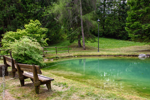 Nature Landscapes Bench At The Lake Stock Picture