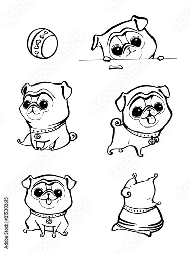 Cartoon Character Pug Dog Poses Cute Pet Dog In The Flat