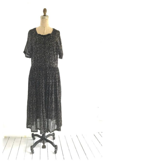 Vintage 90s Grunge Black Floral Long Dress Size Xl