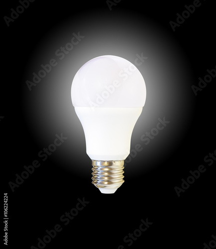 Glowing White Led Light Bulb Isolated On Black Background