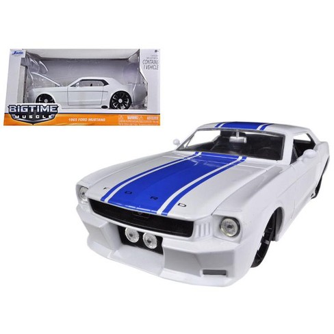 1965 Ford Mustang White With Blue Stripes 1 24 Diecast Car Model By Jada