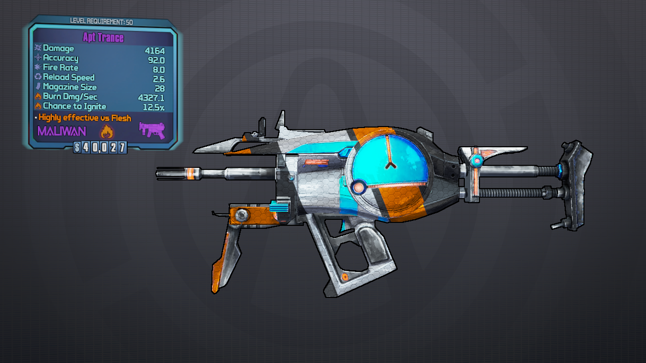 Borderlands 2 maliwan 2. This time its my favourite weapon from borderlands 2. If you need to burn fry or melt your enemies maliwan will be your weapon du jour. All maliwan weapons feature elemental damage and fire energy rather than bullets they still consume ammo. In the maliwan radio ad in borderlands 2 a rifle named deus ex arma is mentioned.