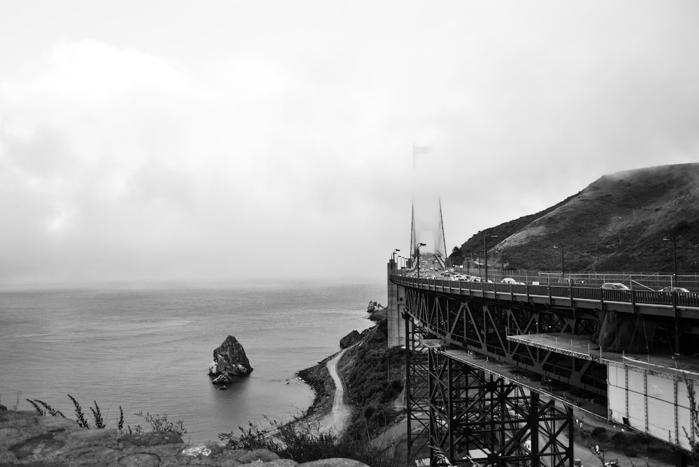 Concrete Bridge Over The Sea In The Middle Of A Deep Fog