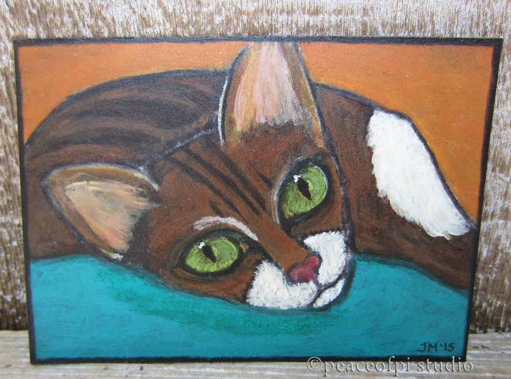 Peaceofpi Studio Resting Cat With Green Eyes Miniature Aceo