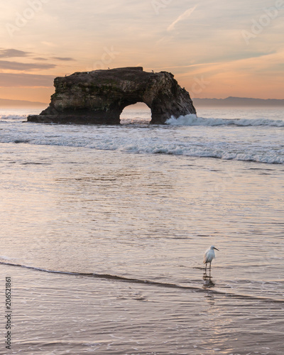Natural Bridges Rock Bird Sunrise Coast Ocean California