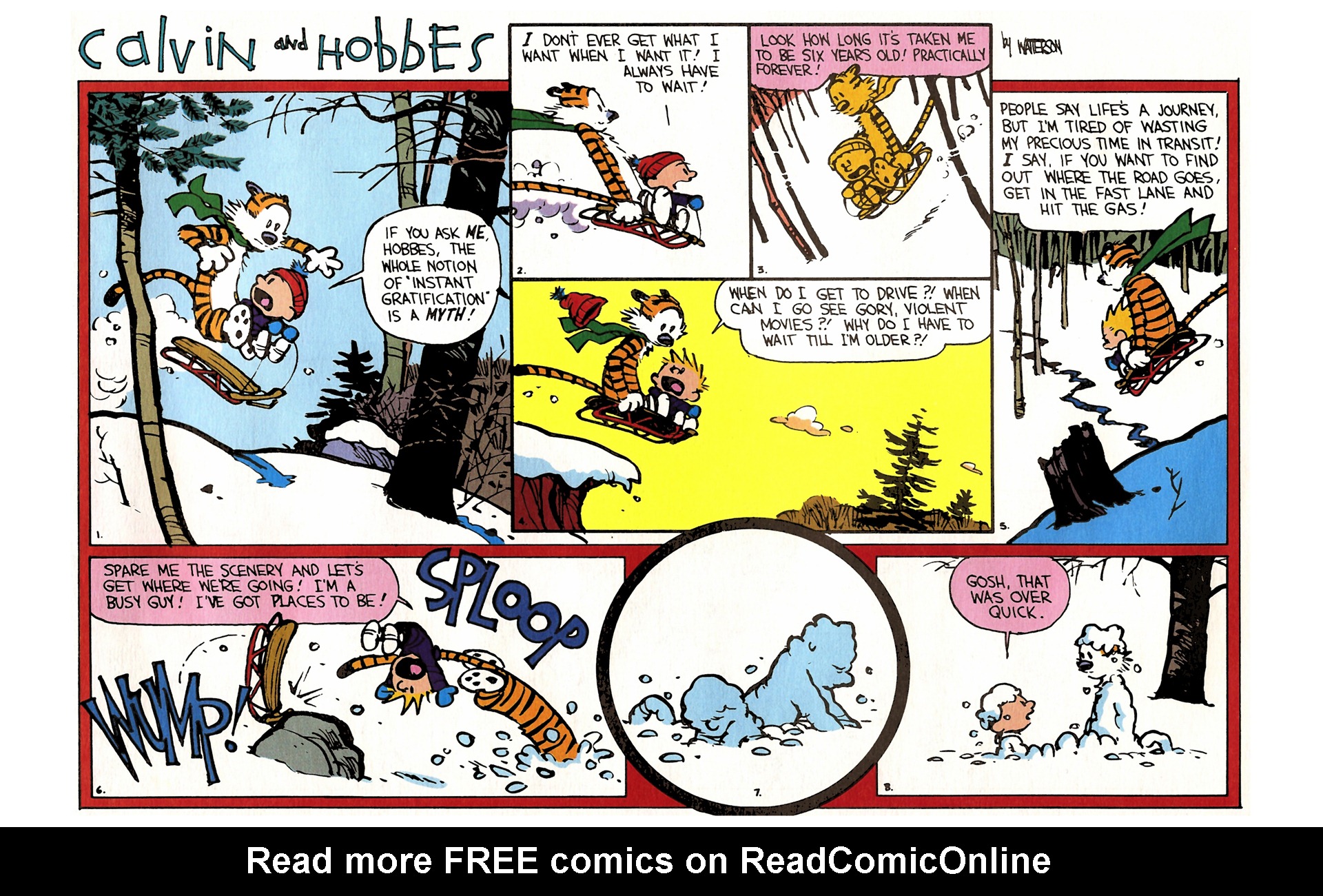 Calvin and hobbes comics 8. The wonderful duo of calvin hobbes which guided me through those innocent days of childhood is as vivid and lively as the moments that i have lived. This year marks 30 years since the strip stopped running. The standard 4 frame comic strip is enlarged to approximately 4 x 12 inches. Free shipping on orders over 25 shipped by amazon.