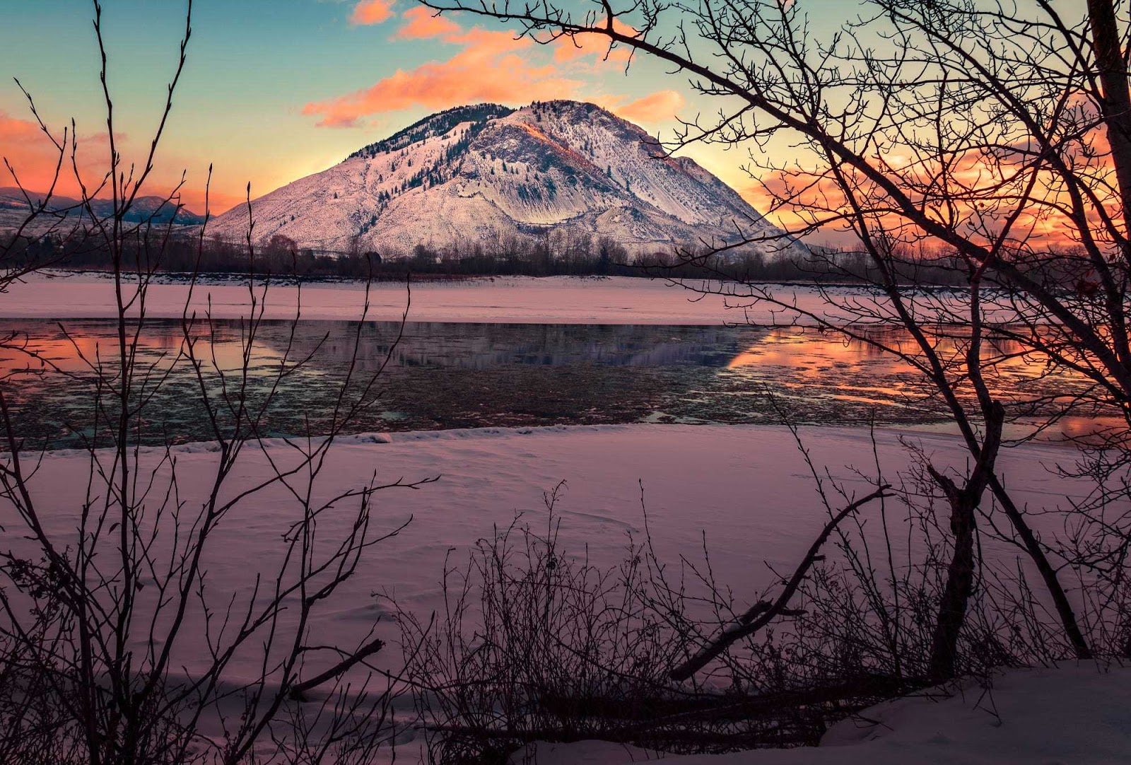 Landscape Nature Sunset Lake Mountain Ice Snowy Peak