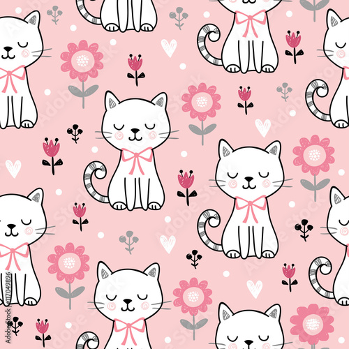 Seamless Pattern With Cute Cats Vector Illustration With