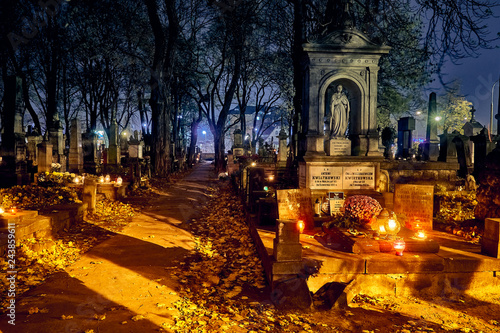 Warsaw Poland November 01 2015 Alley Of Graves With Lighted