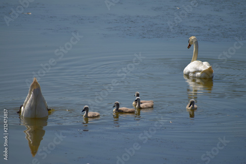 Swan Family Father Swan Mother Swan And Baby Chicks Children