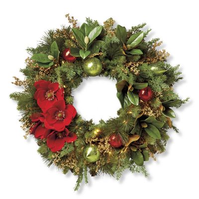 Home Accents Holiday 32 In Pre Lit Led Mix Pe Artificial Christmas Wreath With 50 Warm White Lights