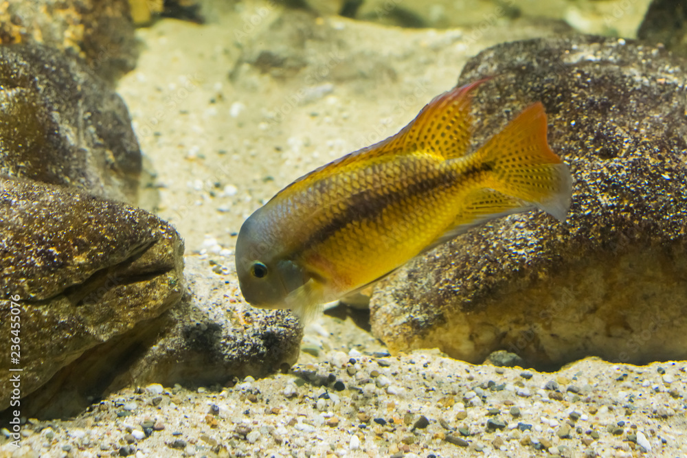 Juvenile Lingingston S Cichlid Fish In Closeup A Young