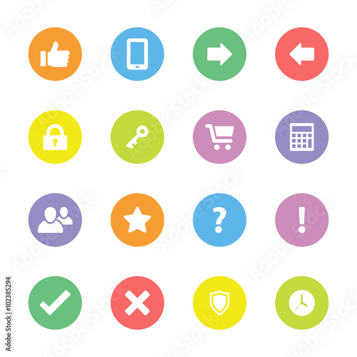 Colorful Simple Flat Icon Set 2 On Circle For Web Design