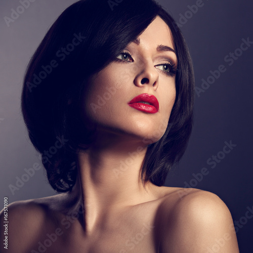 Beautiful Makeup Woman With Perfect Face Short Black Hair