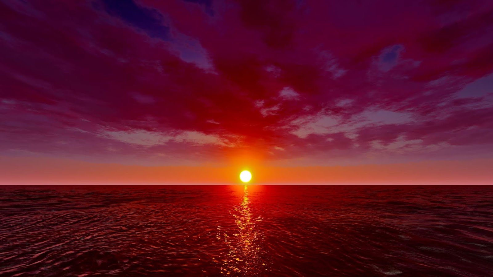 Sunrise In Ocean Red Pink Clouds In Sky 4k Nature Background Stock Video
