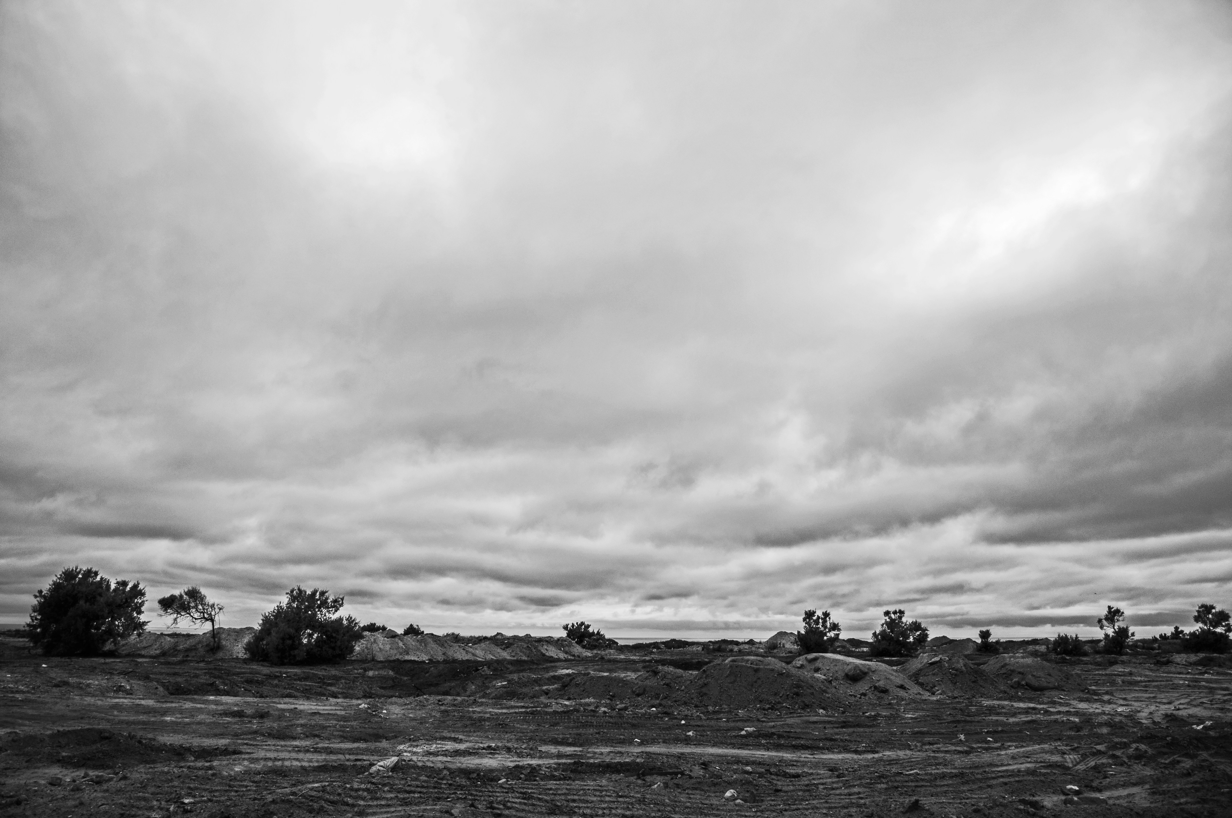 Nature Trees Monochrome Field Clouds Rain Horizon