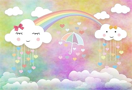 Laeacco Sweet Smiling Bowknot Coluds Backdrop 7x5ft Vinyl Pastel Abstract Ombre Colorful Background Rainbow Cute Clouds Umbrella Hearts Photography