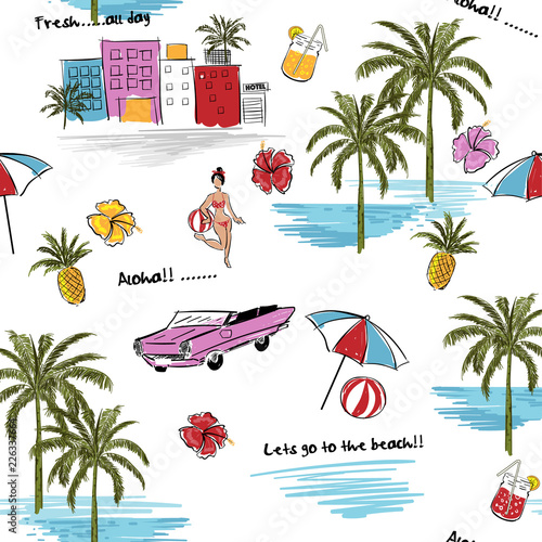 Beautiful Seamless Colorful Island Pattern On White