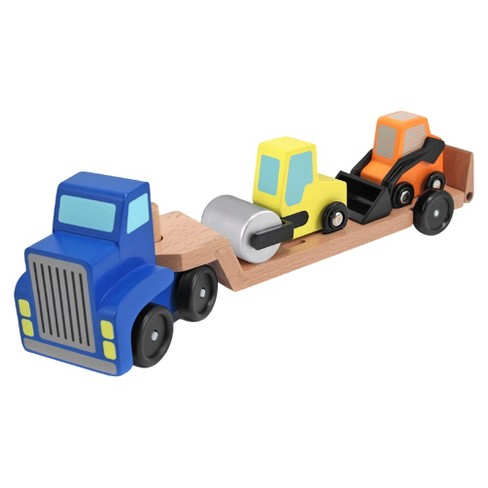 Melissa Doug Low Loader Wooden Vehicle Play Set 1 Truck With 2 Chunky Construction Vehicles