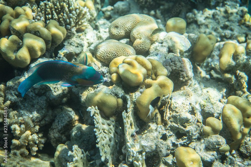 Underwater Landscape With Tropical Fish Coral Seabottom