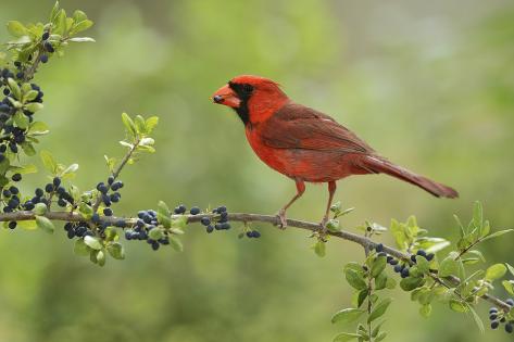 Northern Cardinal Male Eating Elbow Bush Berries Hill Country Texas Usa Premium Photographic Print By Rolf Nussbaumer Art Com
