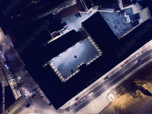 Aerial View Over Capital City Vilnius Old Town During Night