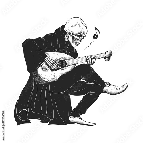 Minstrel Playing Guitar Grim Reaper Musician Cartoon Gothic