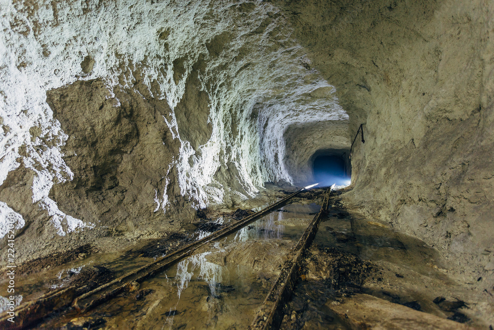 Photo Art Print Dark Dirty Flooded Abandoned Mine Tunnel