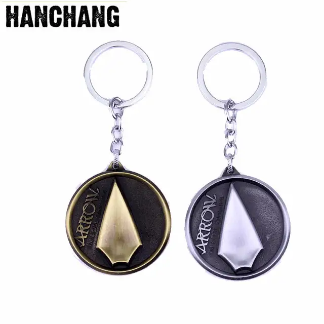 Hanchangh Jewelry Dc Comics Green Arrow Keychain Movie Superhero Green Arrow Logo Keychain Ring Holder Car Accessories Fans Gift