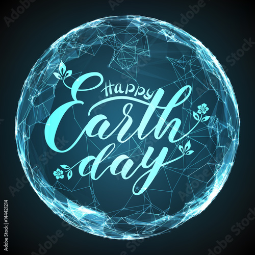 Happy Earth Day Lettering On Abstract Vector Mesh Sphere